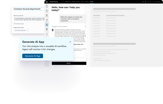 Deliver agentic analytics built on AI-ready data and trusted autonomous agents — designed for real-world scale and speed.