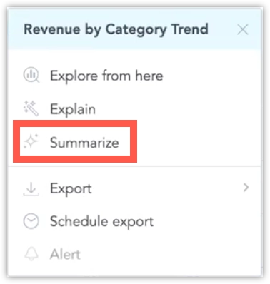 This opens the AI Assistant and immediately starts the summarization request for that visualization.