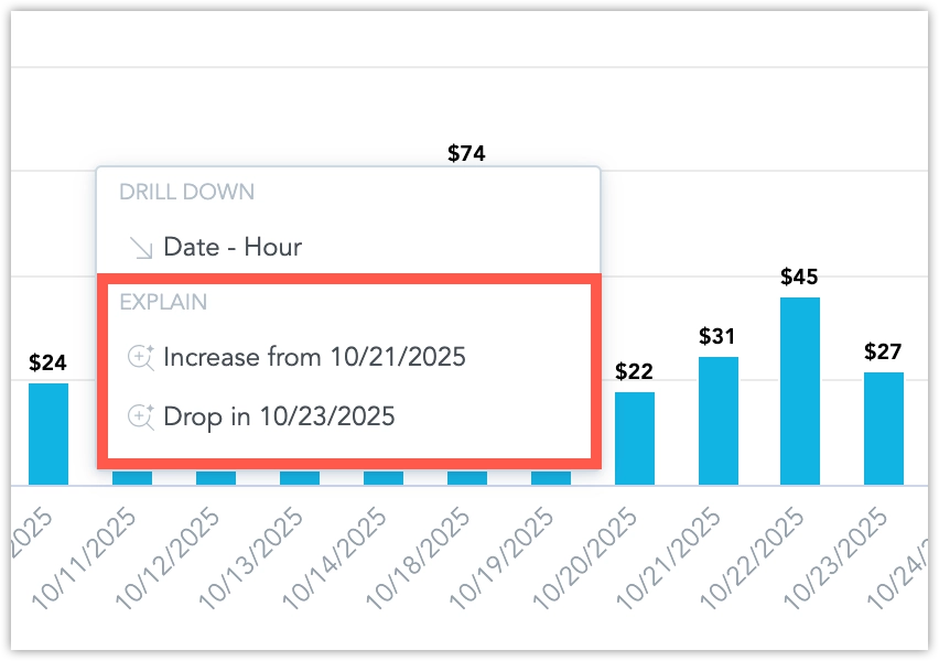 If a visualization uses an unsupported granularity (for example, Hour of Day), the Run Key Driver Analysis option will not appear in the menu.