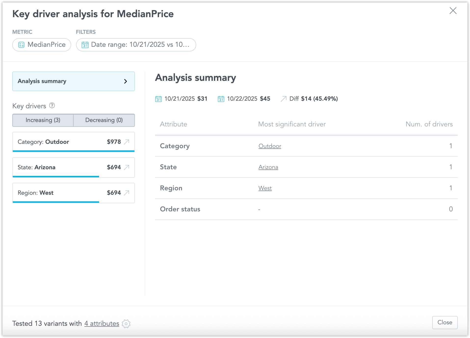 The system automatically identifies compatible attributes, so you don’t need to manually select drivers for analysis.