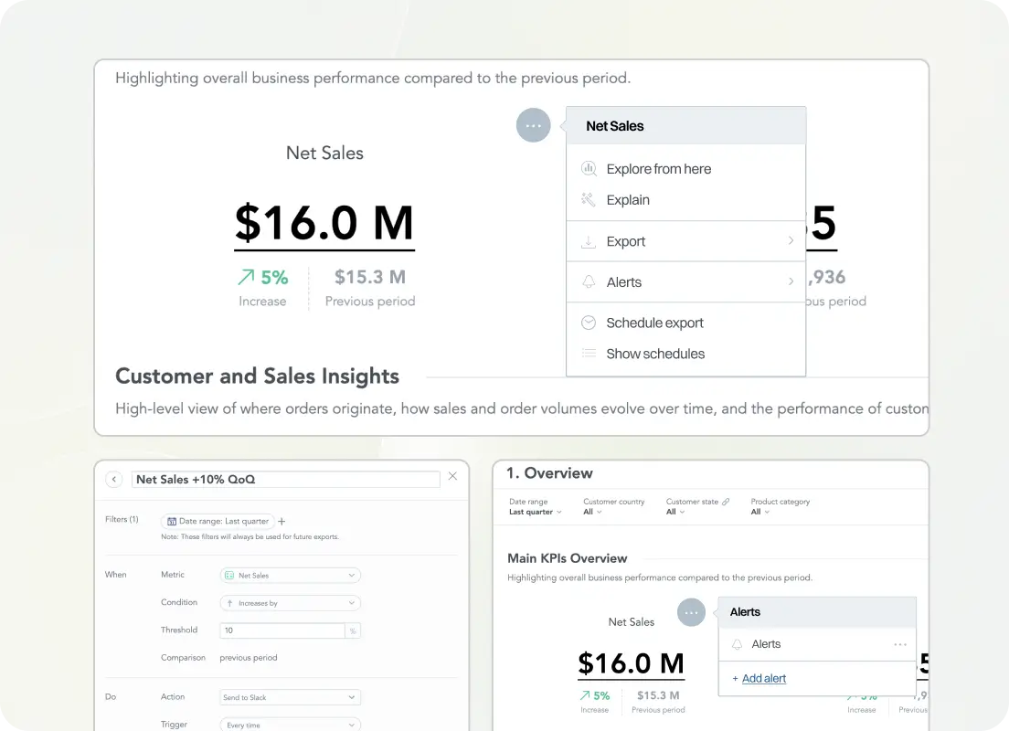 Power intelligent data workflows that automatically schedule exports, trigger alerts, and deliver insights when and where they matter.