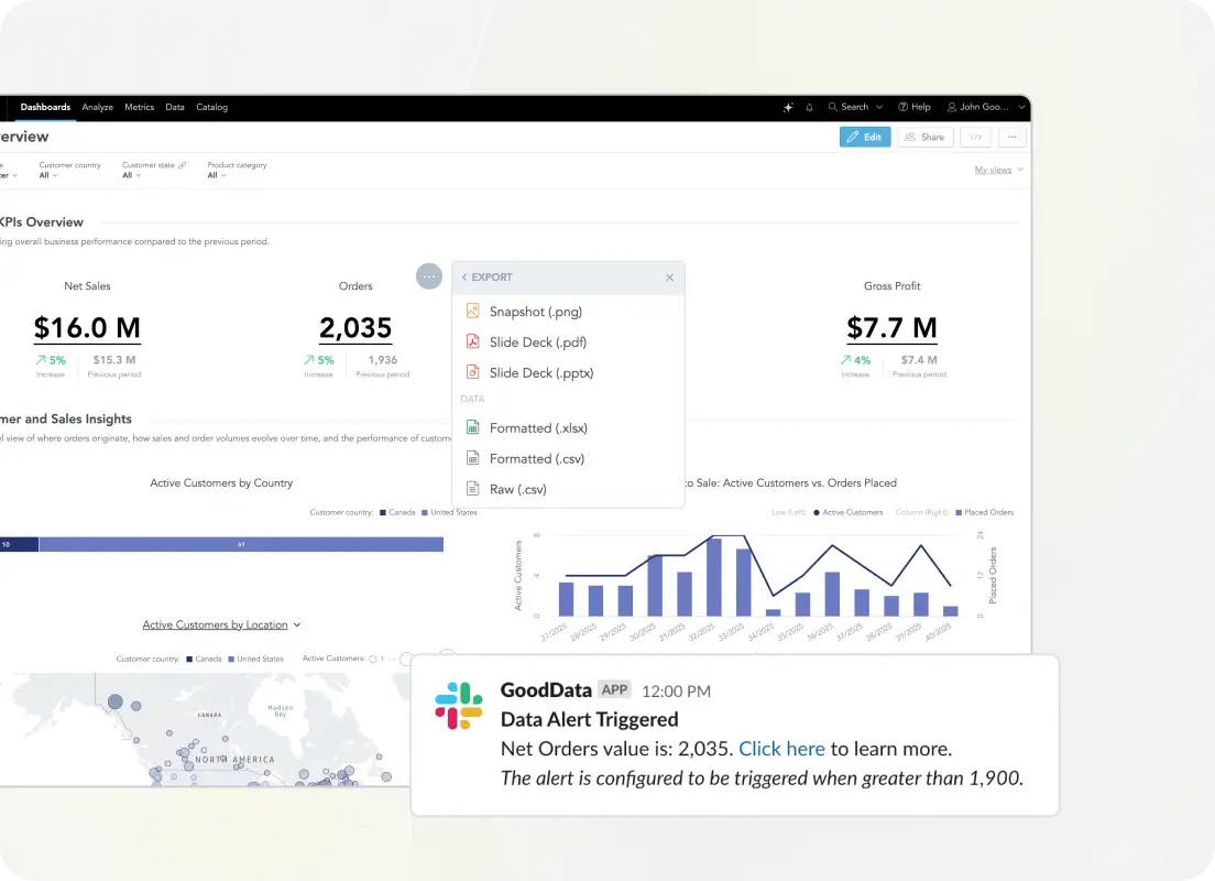 “With GoodData, we’ve transformed our embedded analytics experience for our customers, giving them tailored, actionable insights into sales performance and customer engagement. Automation features like scheduled exports help ensure our users get the information they need, when they need it, which is a big upgrade to our analytics suite.”